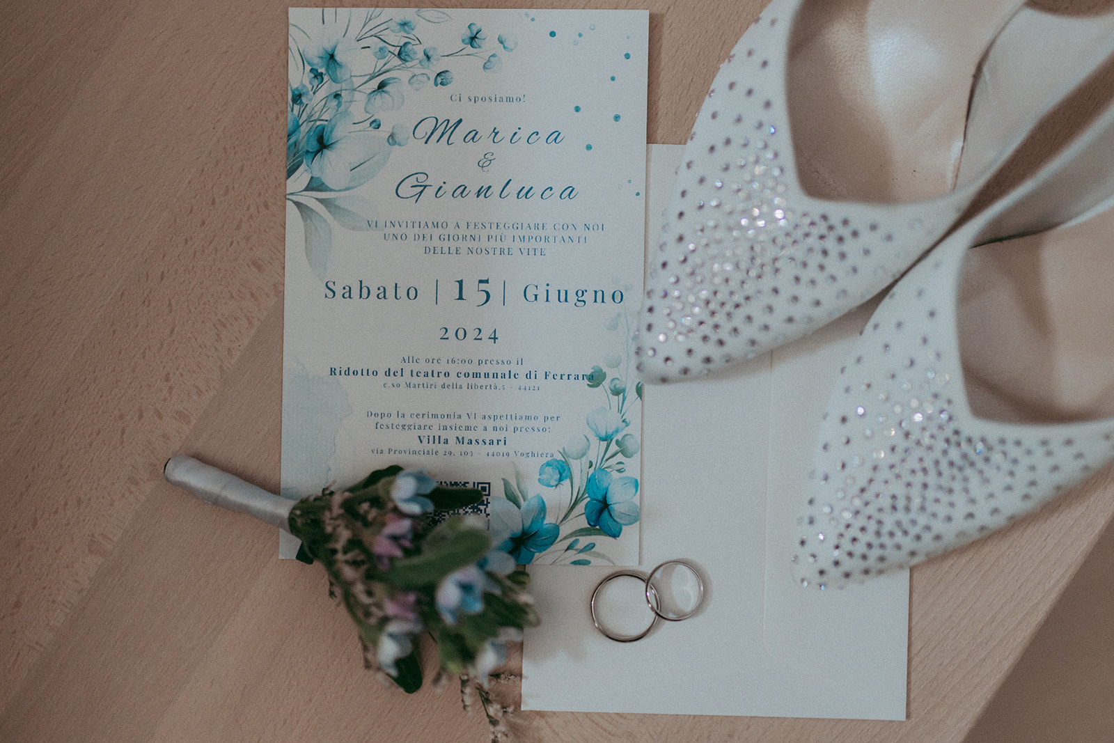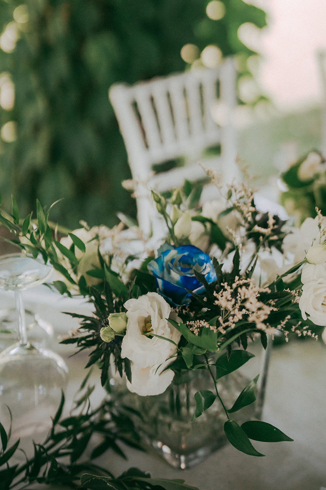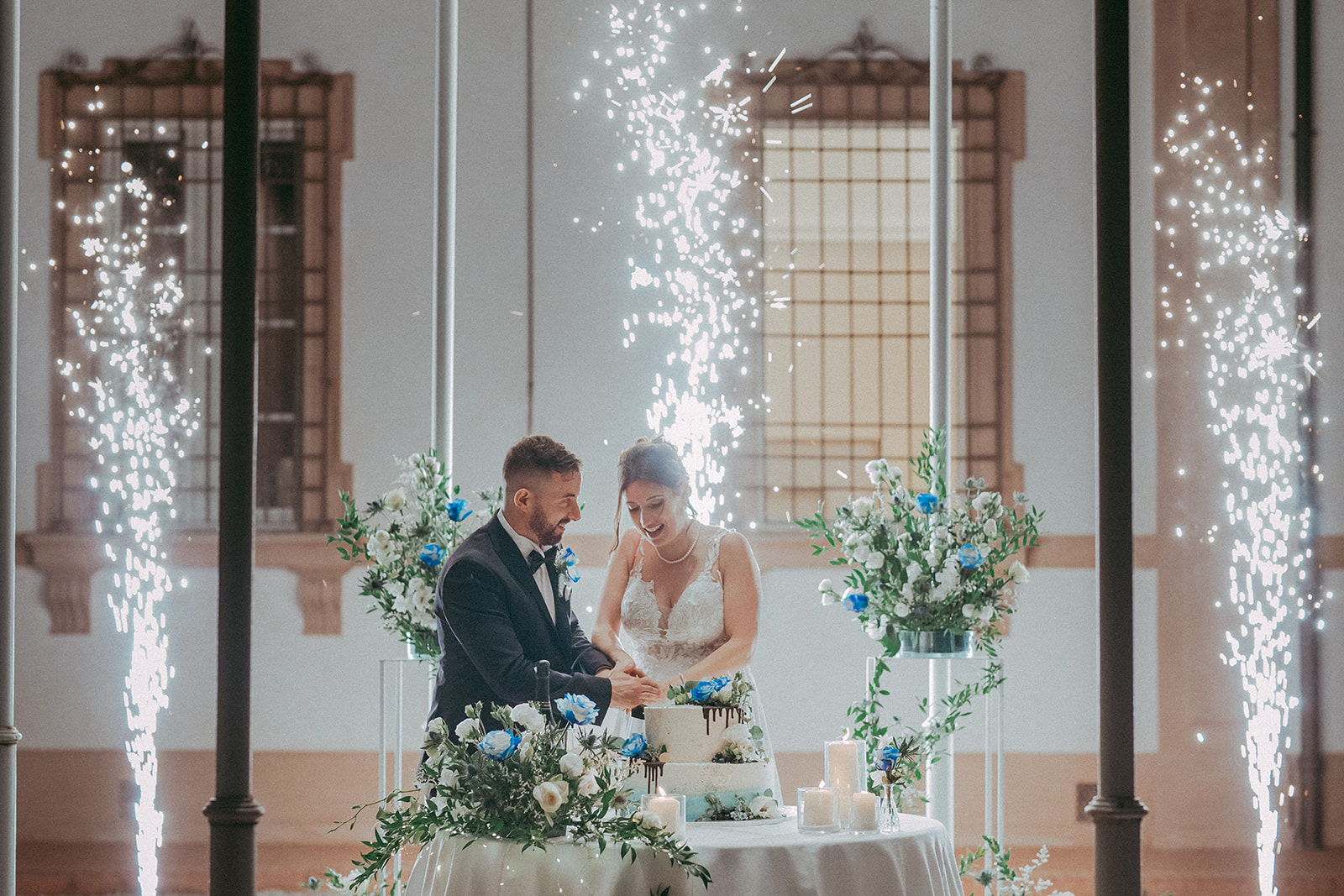Il matrimonio di M & G è stato un trionfo di eleganza e purezza, interamente dedicato al bianco con un tocco di blu per celebrare il colore preferito dello sposo.