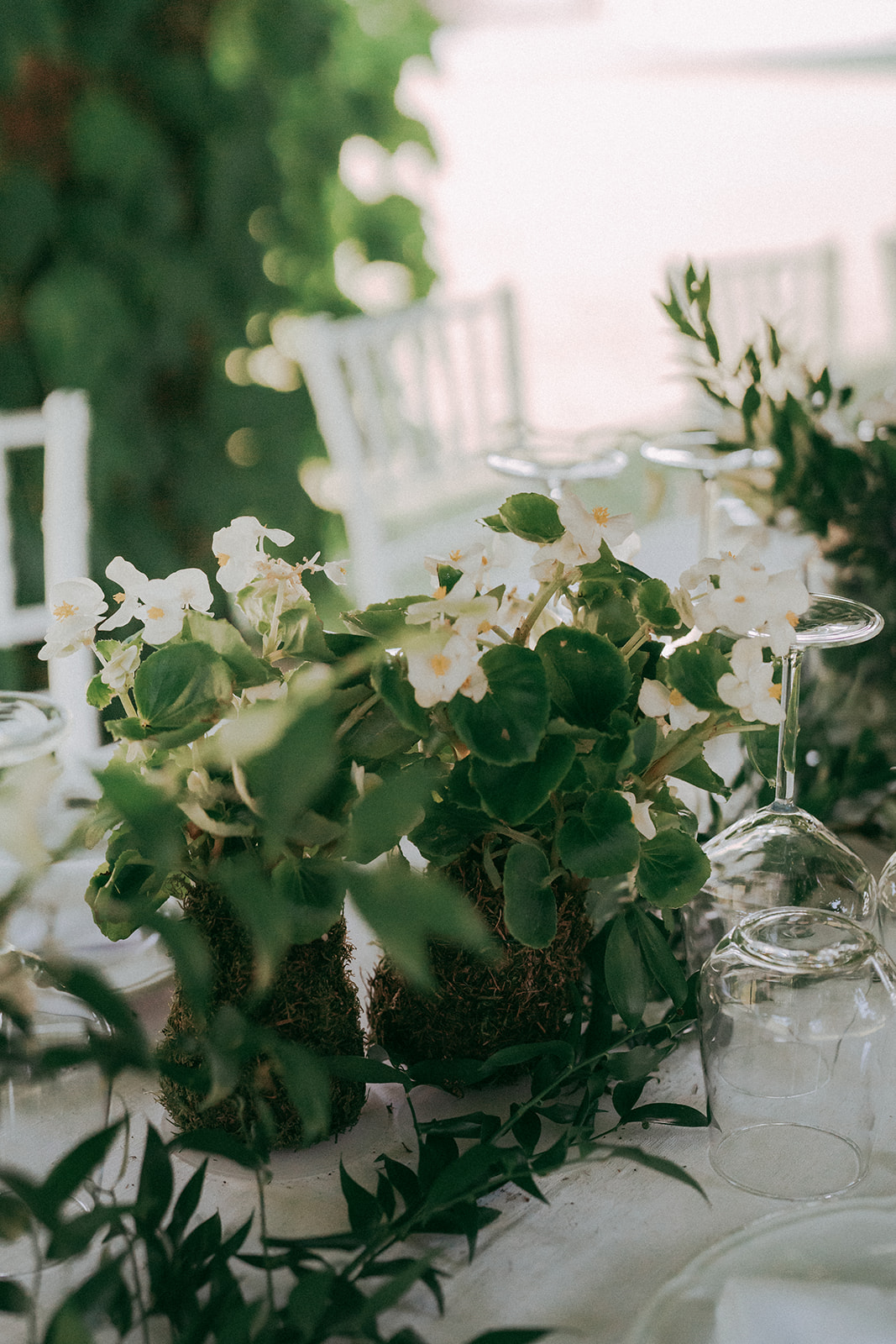 A dare un tocco di carattere, un elemento distintivo che ha raccontato la personalità degli sposi: i kokedama, tanto amato dalla coppia. Questo contrasto tra i fiori e le composizioni di Kokedama ha creato un gioco di eleganza e passione, rendendo l’atmosfera ancora più suggestiva.