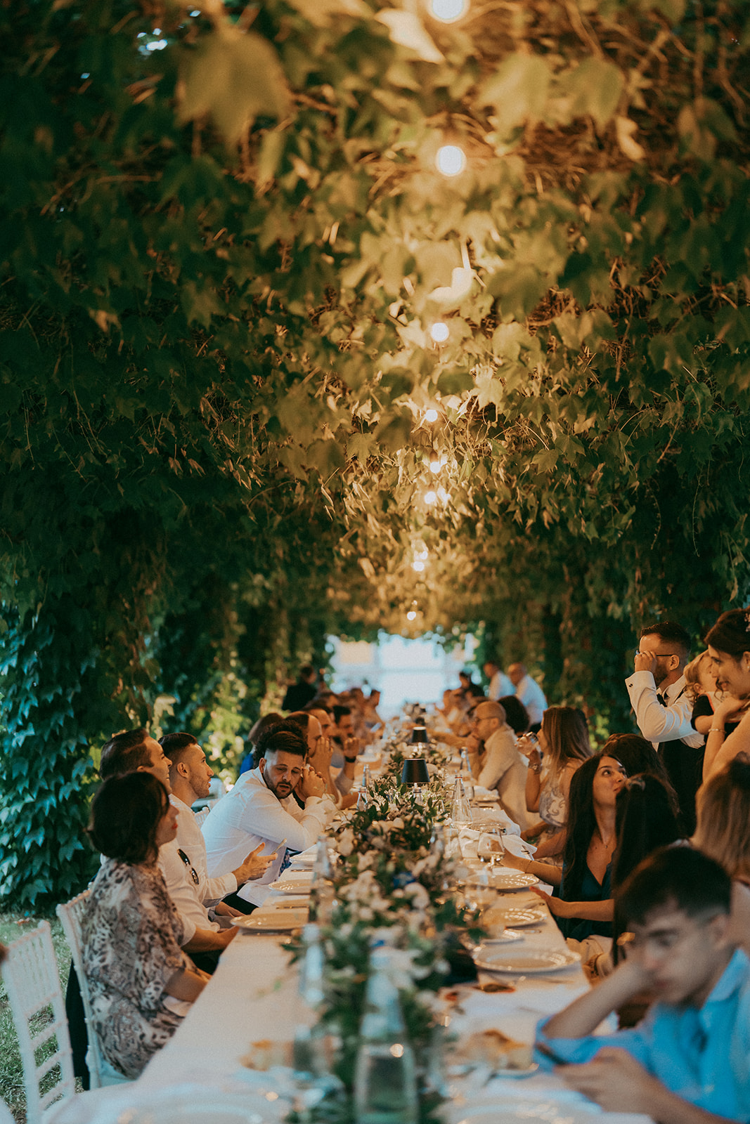 L’allestimento nel tunnel di vite ha regalato agli sposi e agli invitati un’esperienza magica e romantica, proprio come l’amore che li unisce.
